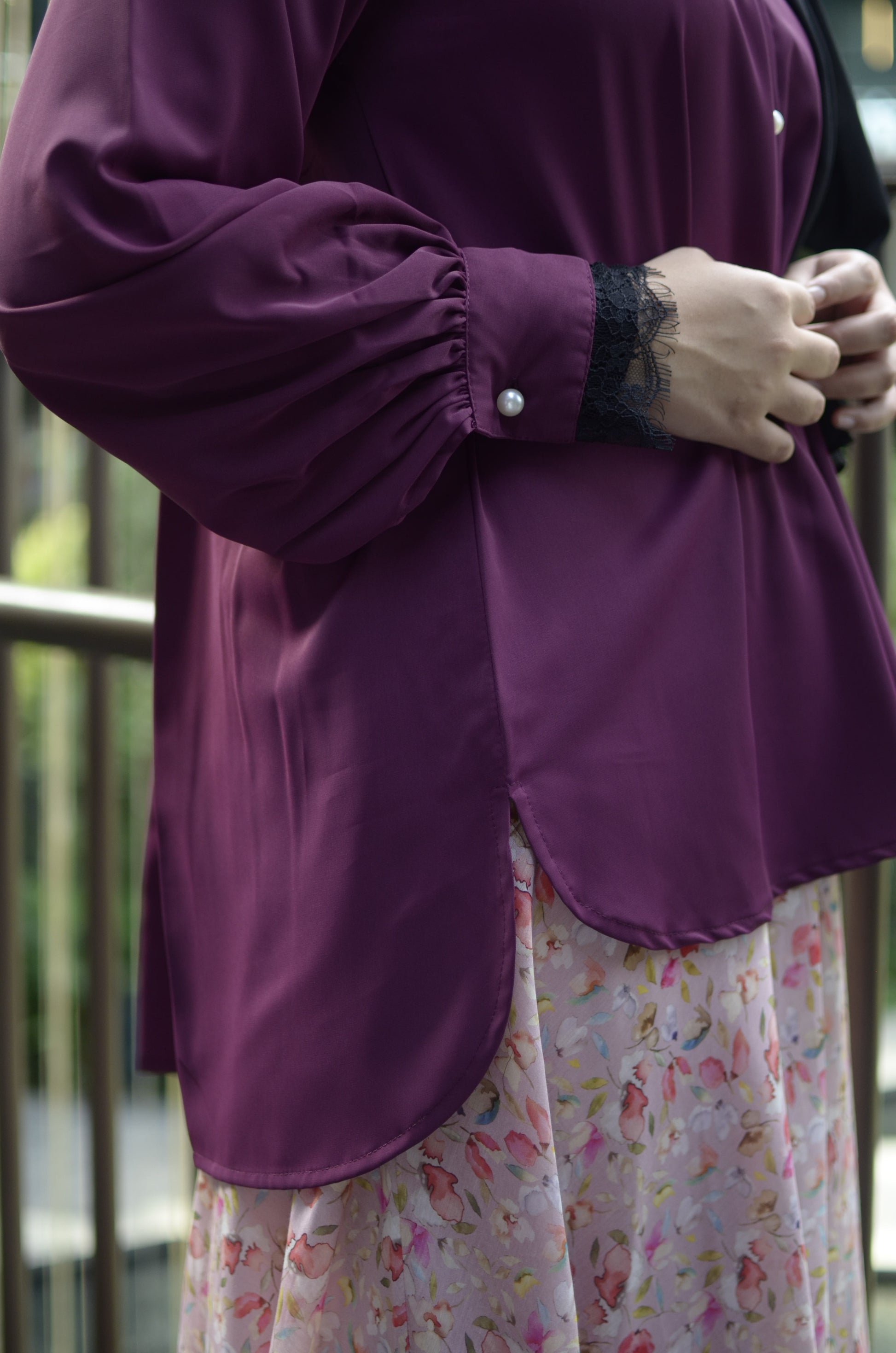 - Lace insert at cuffs