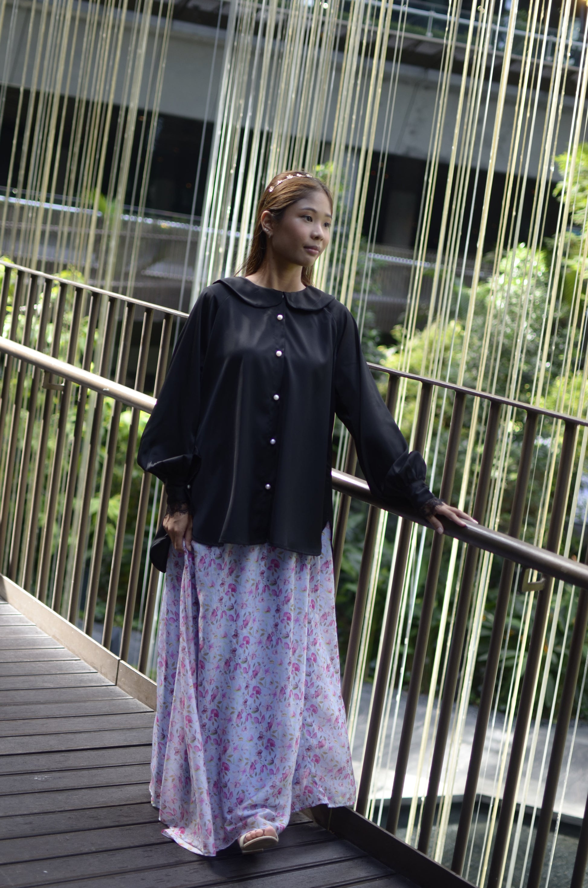 The epitome of grace and sophistication is reflected in our ARIA maxi skirt. This flowy circle skirt made from a chiffon organza fabric will be your next favourite skirt! It has the prettiest floral prints and it comes in two colourways. A baby pink or baby blue tone. Its fully lined for your modest coverage. Come get yours today! It has an elasticised waist at the back with no clasps. So no worries if this skirt is a little long, you can always just fold it in or have it tailored to your desired length. Minimal ironing is required so this could be the next needed vacation piece too!