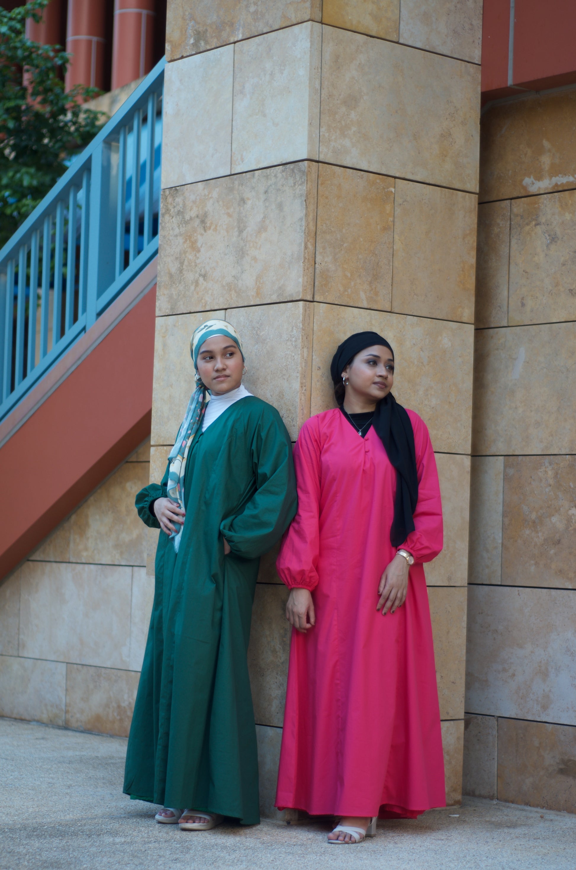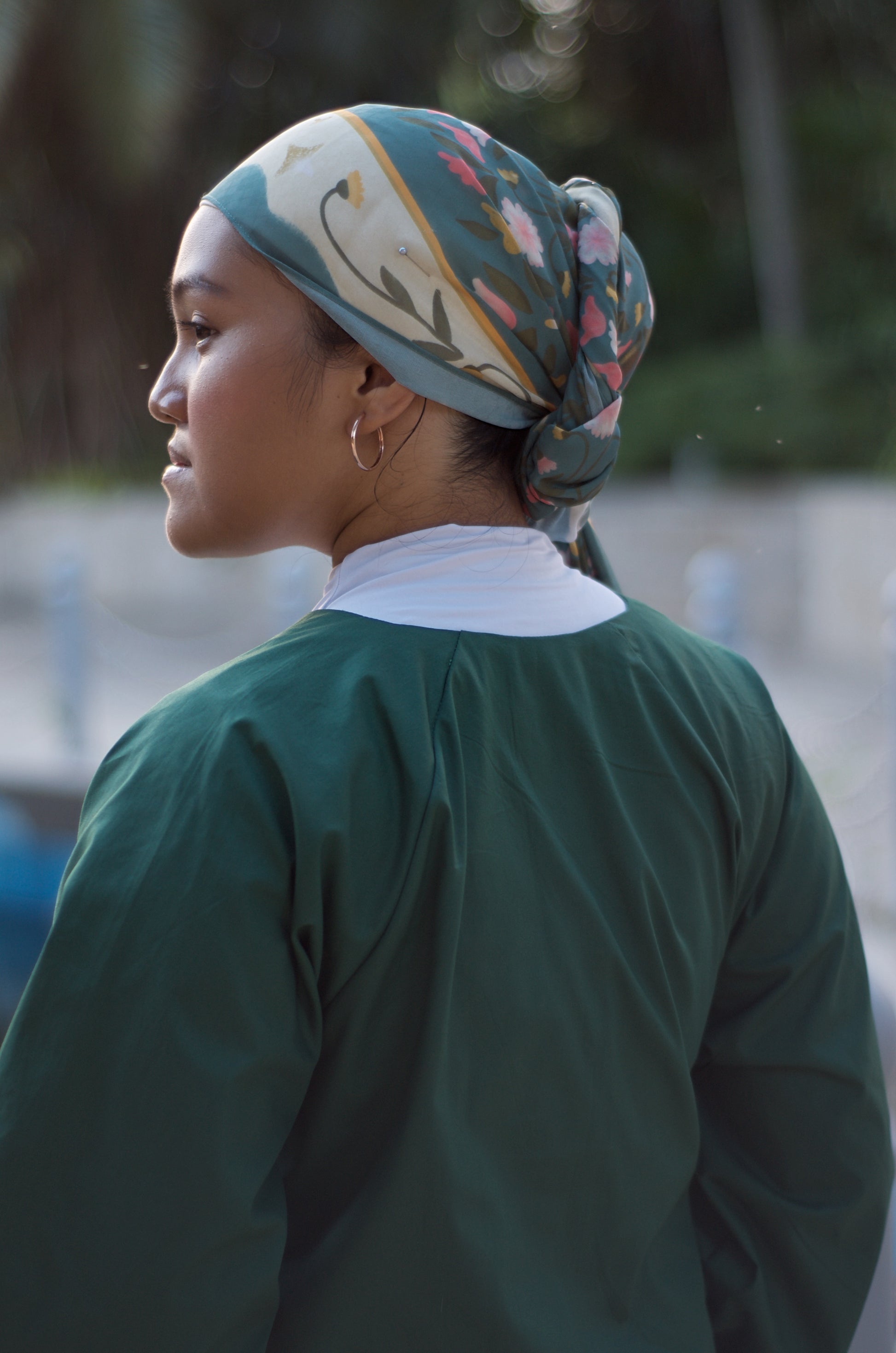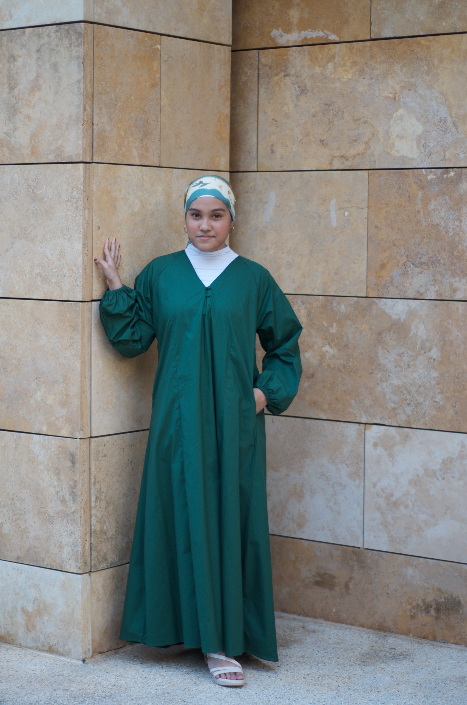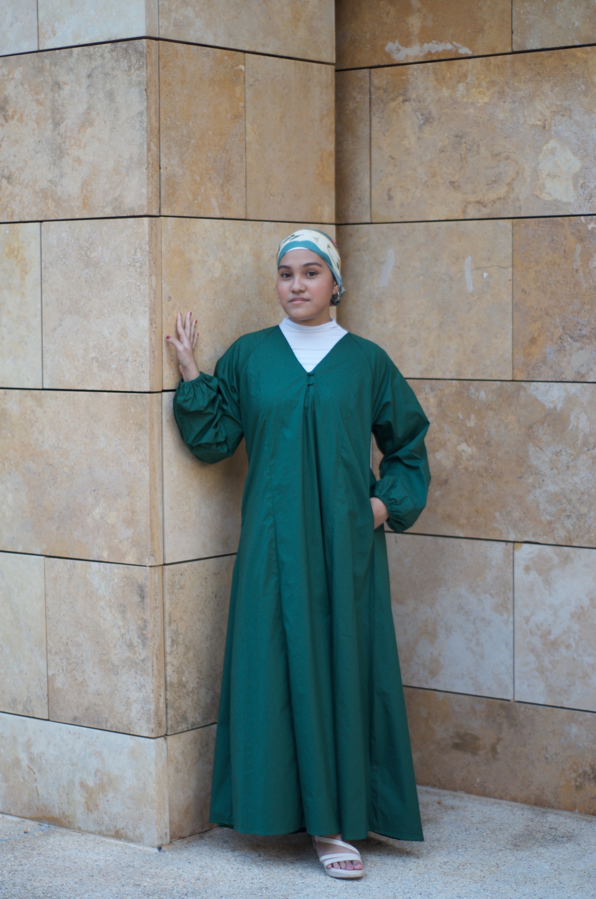 Model Aishah is 163cm, UK 10 and is wearing a size L/XL for Luna in Forest Green.