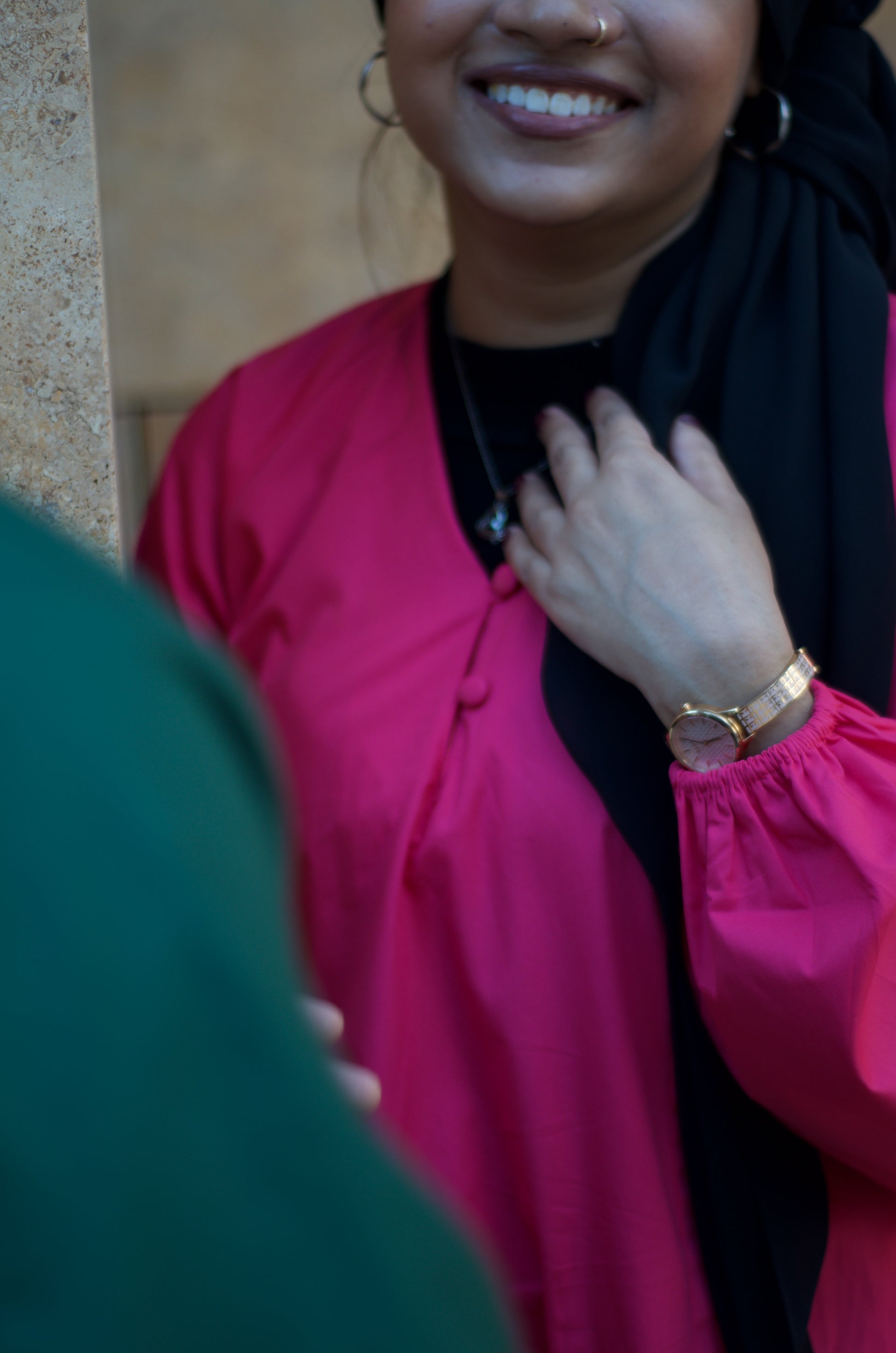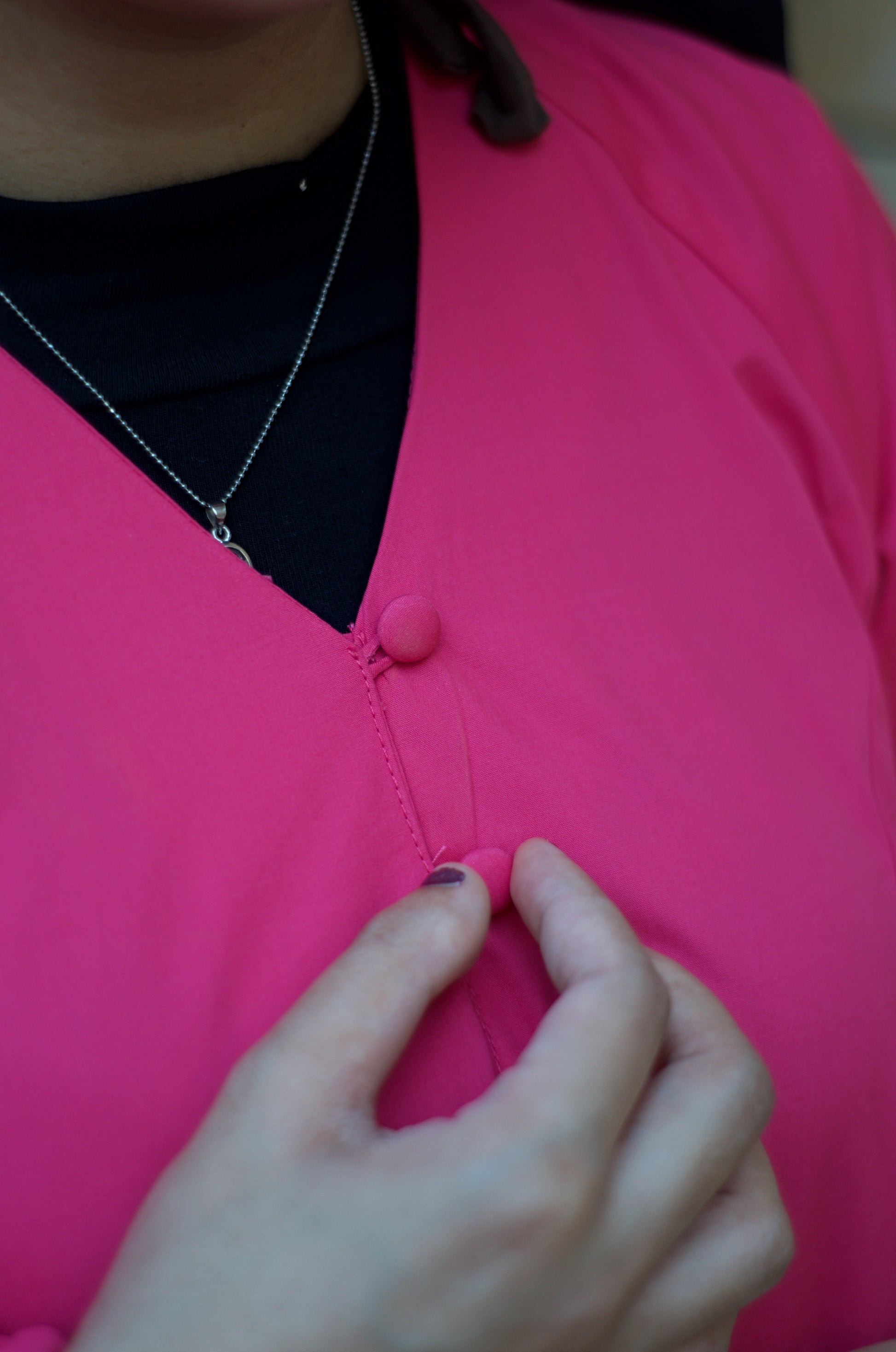Model Jazmina is 158cm, UK 8 and is wearing a size S/M for Fuchsia Pink.